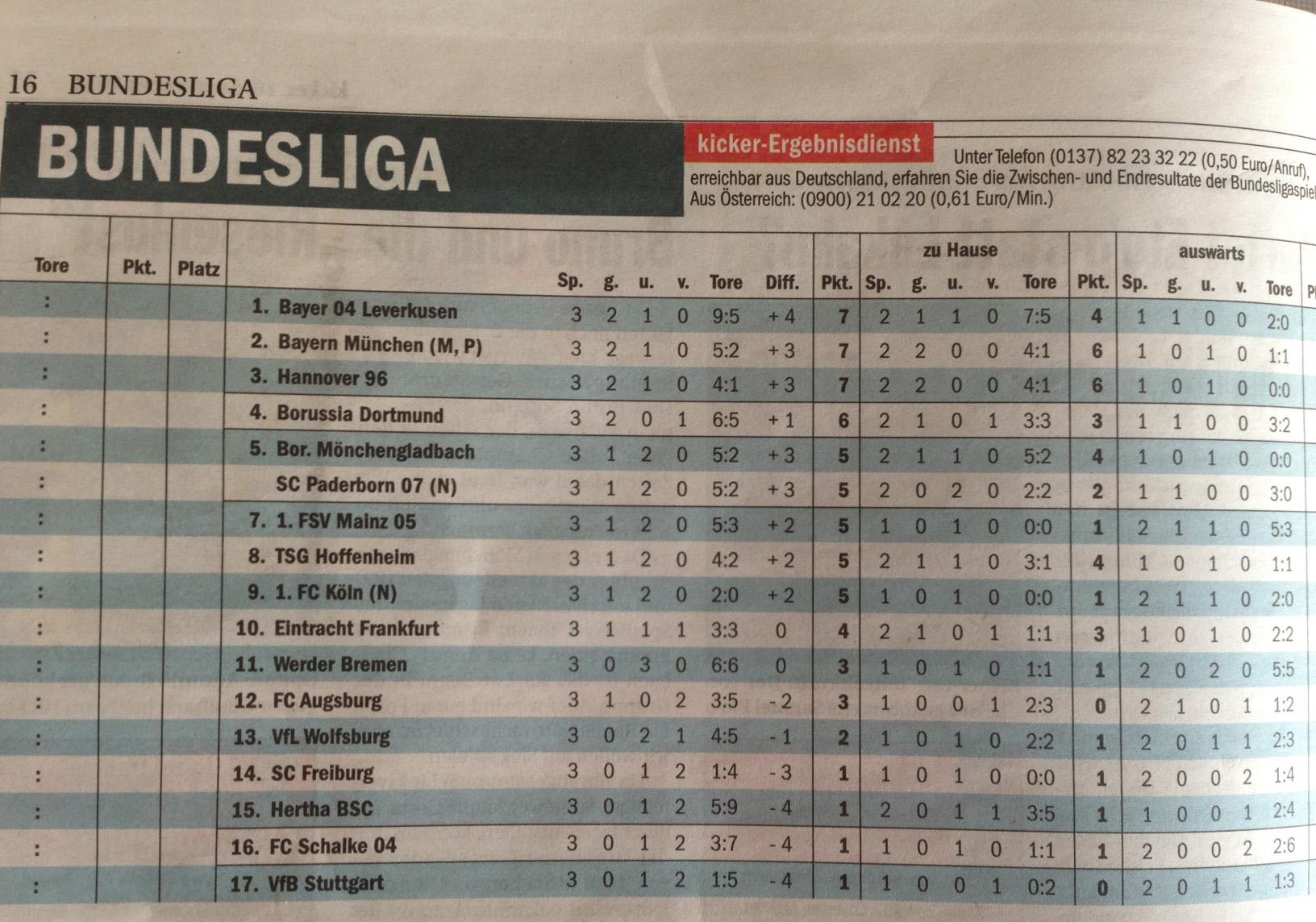 88. Wolfsburg kann sich eine Niederlage erlauben, denn durch den Sieg von Bayern und Dortmund, ist die beste Liga der Welt immer noch in Führung.